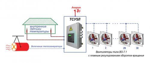 | Тиристорная станция управления микроклиматом ТСУ-5Л предназначена для плавного регулирования скорости вращения трехфазных асинхронных электродвигателей вытяжных вентиляторов с целью автоматического поддержания температуры воздуха в животноводческих, сельскохозяйственных и других помещениях. В ТСУ-5Л предусмотрены следующие возможности: - автоматический и ручной режимы работы;